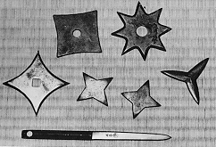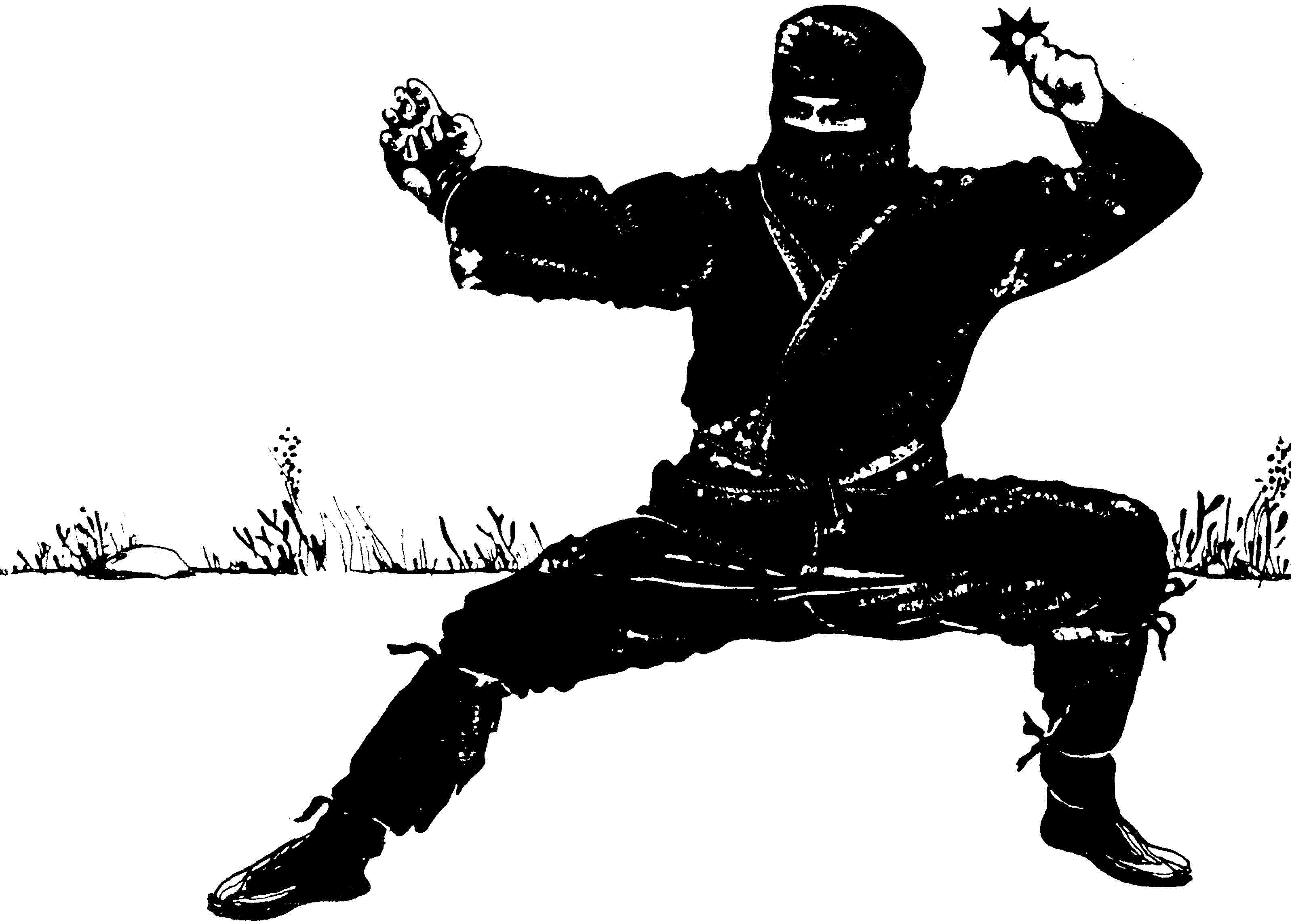 נינג'ה זורק להב הטלה. ידו הימנית בתוך "שוקו" - דוקרני יד המשמשים לעזרה בטיפוס או בהתקפה לגוף ולפנים.